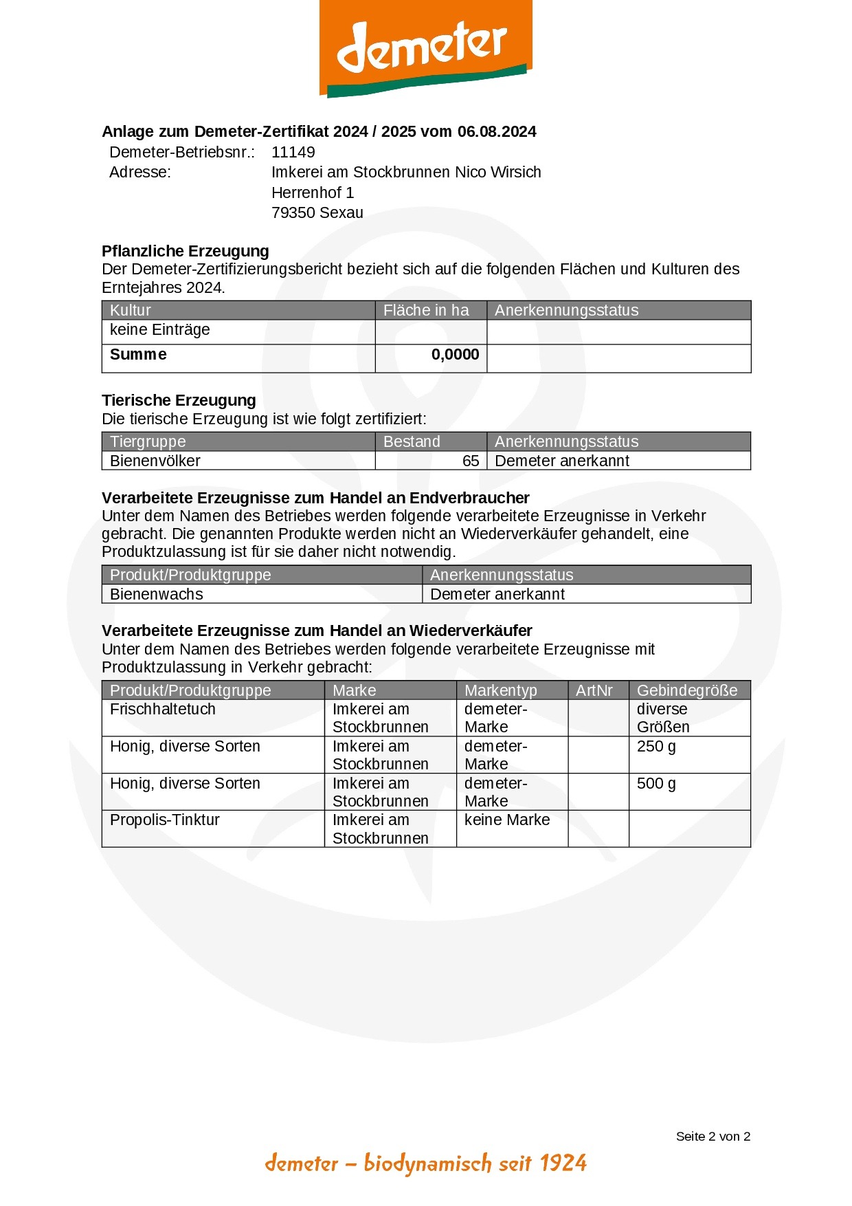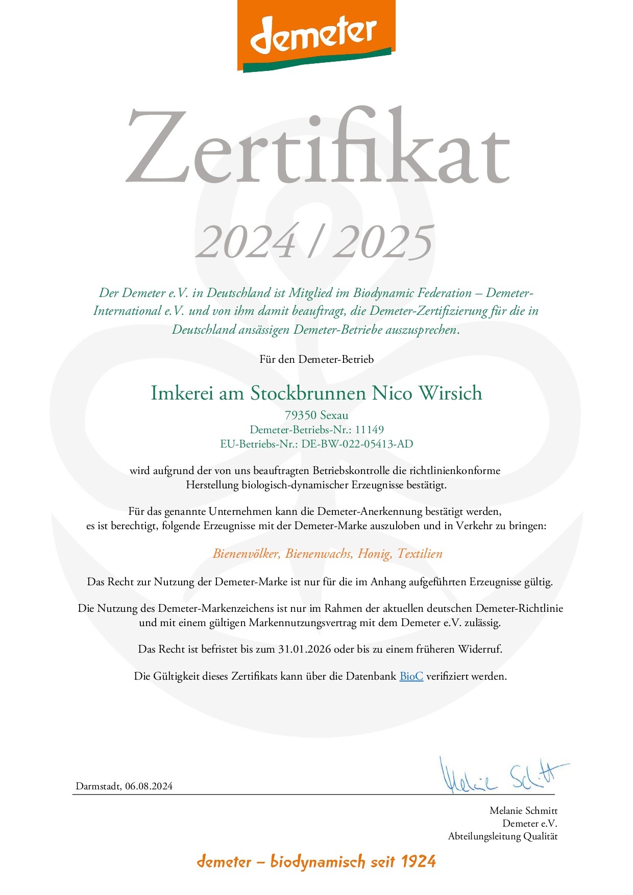 Zertifizierung nach Demeter
